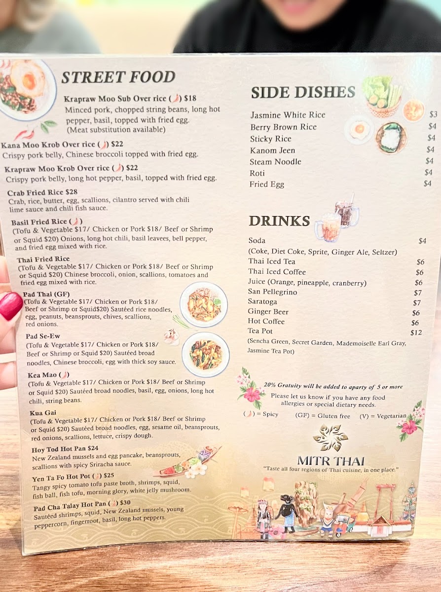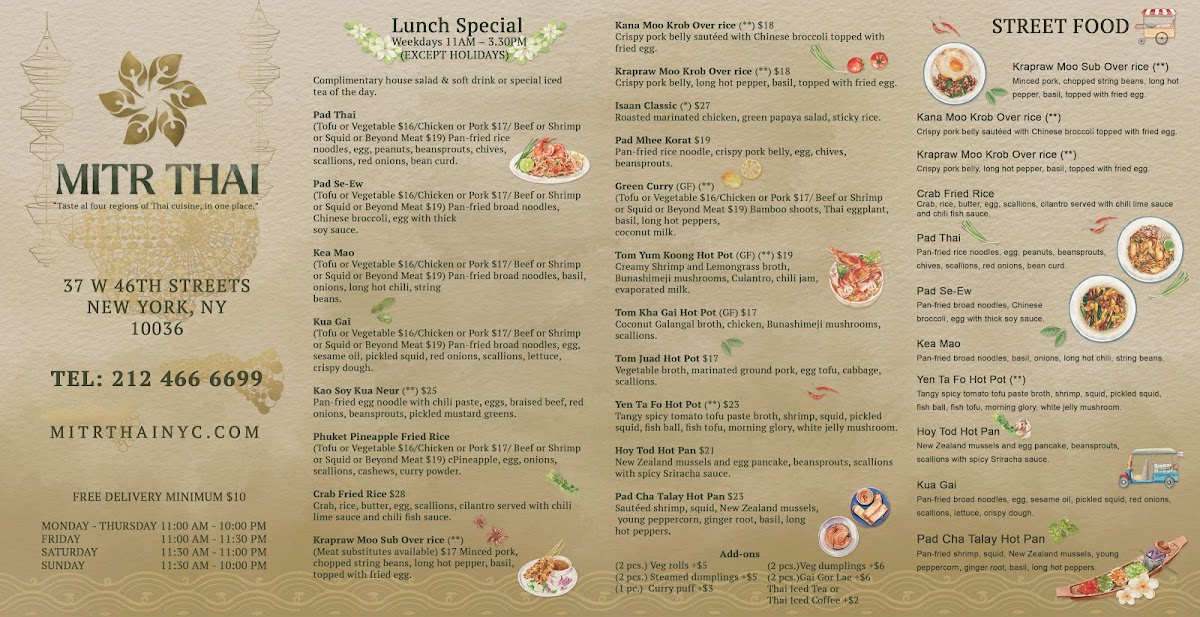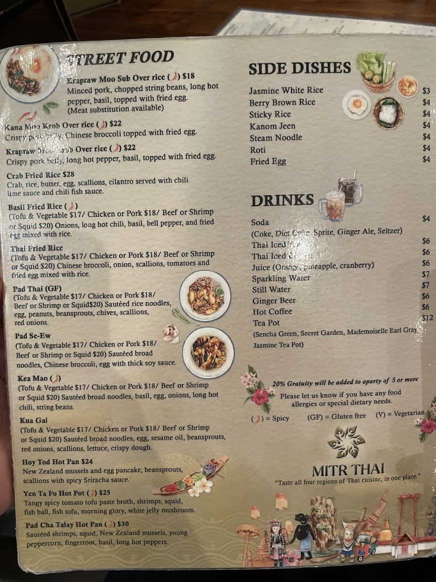 Mixed greens, peanut, dried shrimp powder, red onions, roasted coconut flakes, ginger, lime, pomegranate, thicken palm sugar dressing.