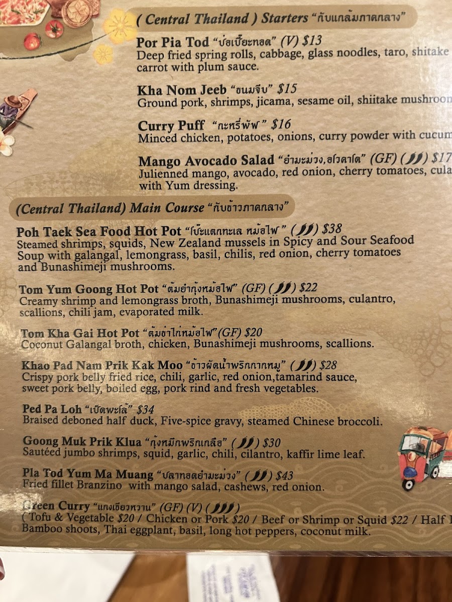 Sautéed shrimps, squid, New Zealand mussels, young peppercorn, fingerroot, basil, long hot peppers.